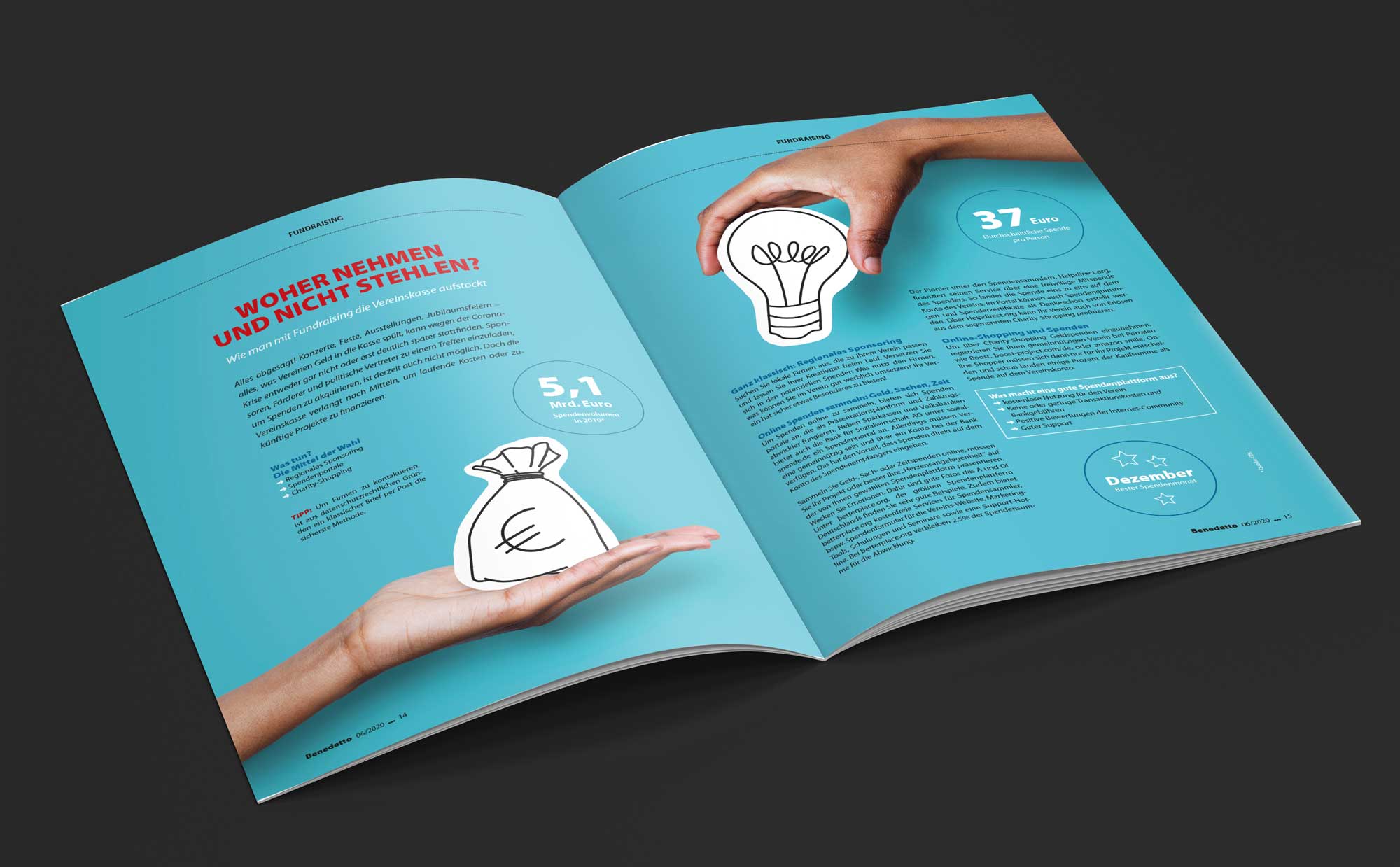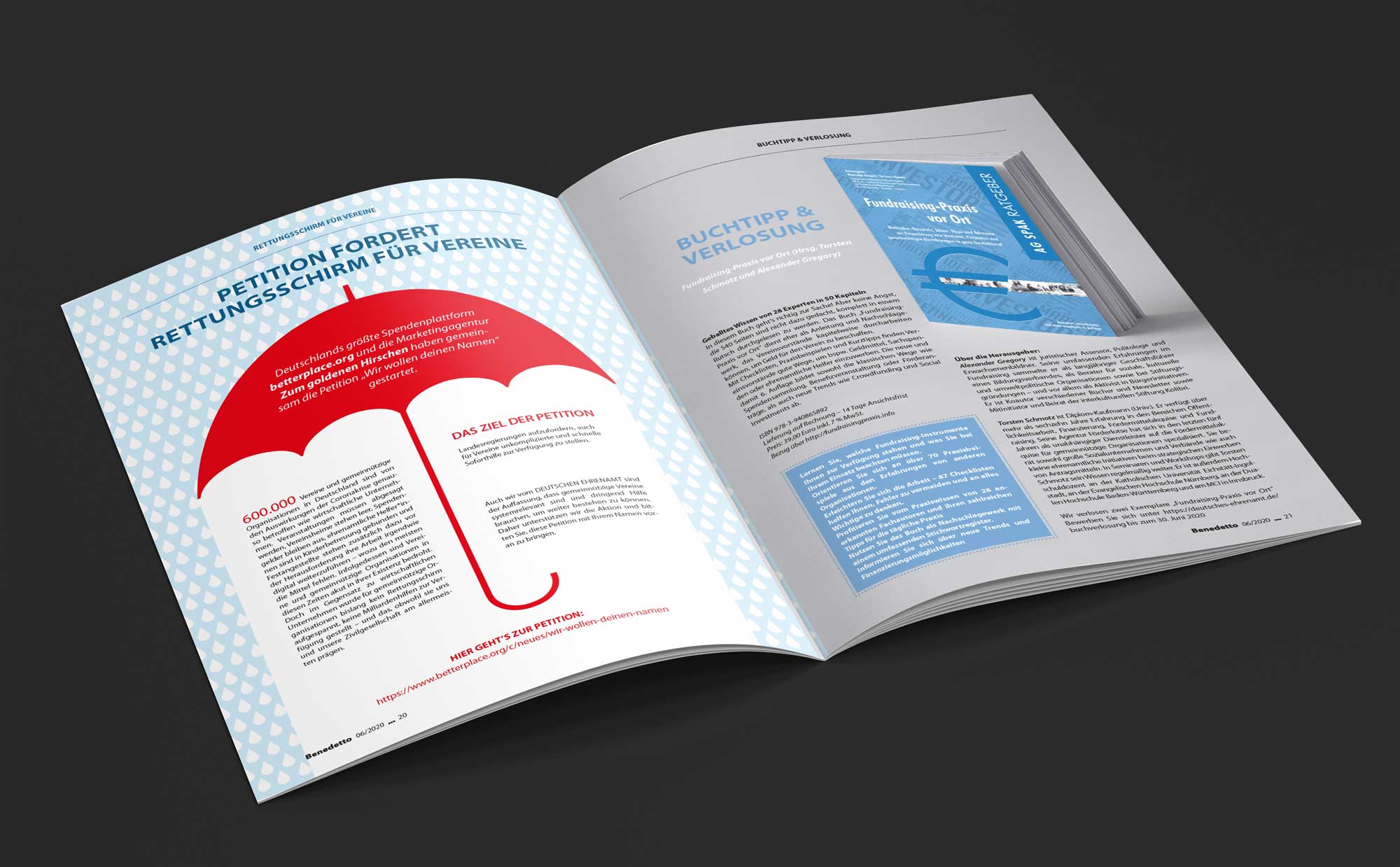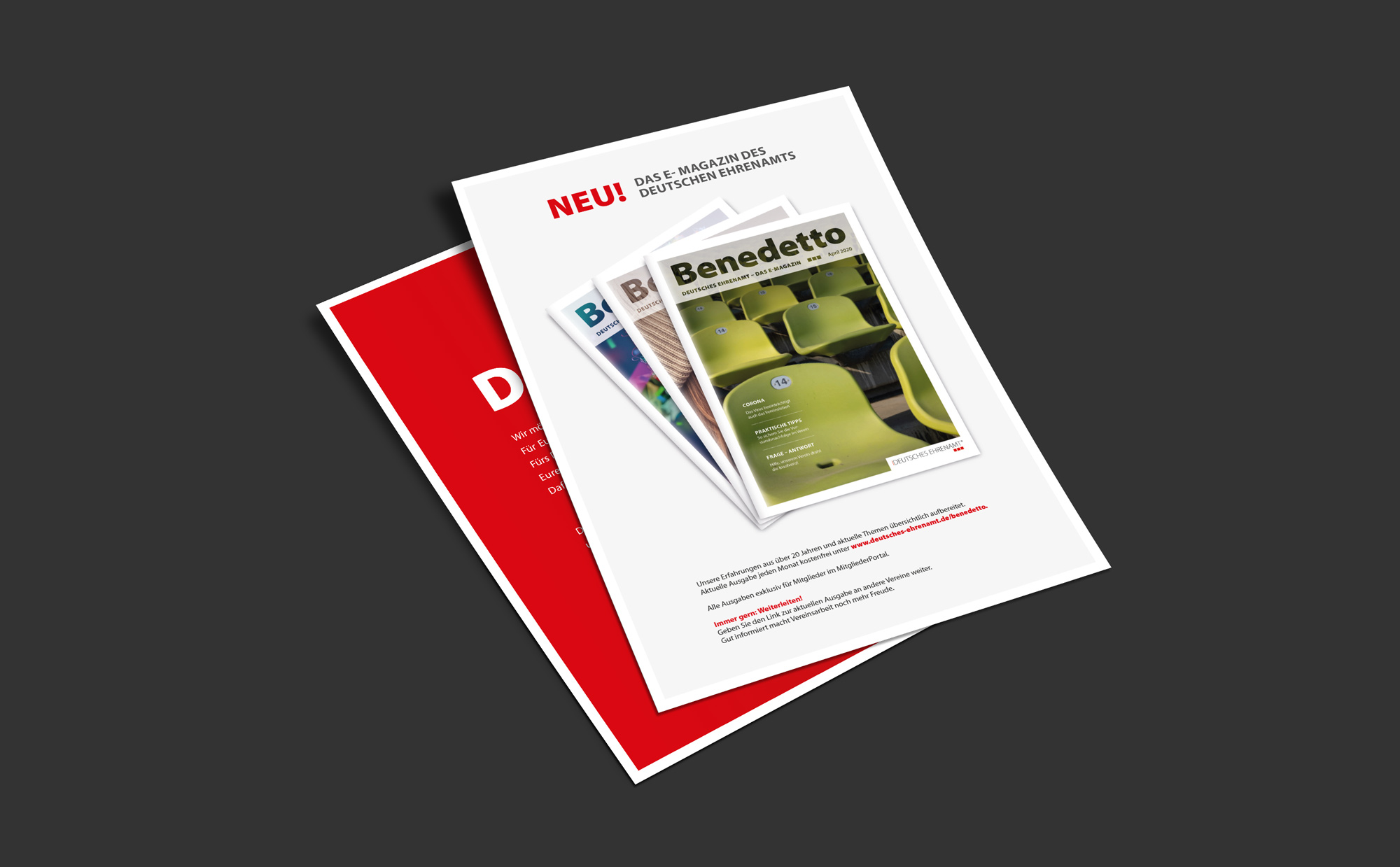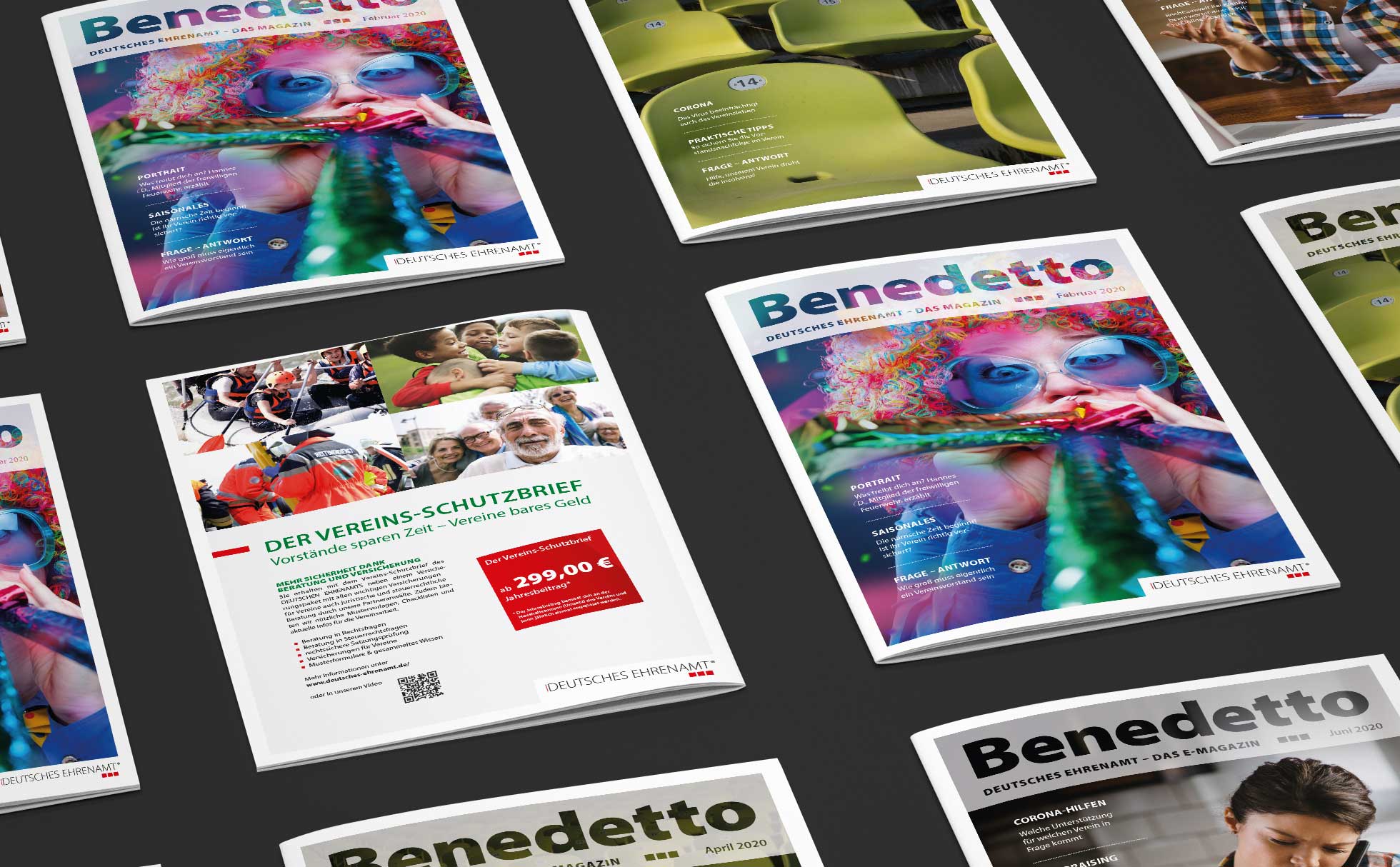 Ausgaben der Kundenzeitschrift „Benedetto“ entstehen jedes Jahr in der Zusammenarbeit mit dem DEUTSCHEN EHRENAMT – vom Inhalt bis zum fertigen Druck.